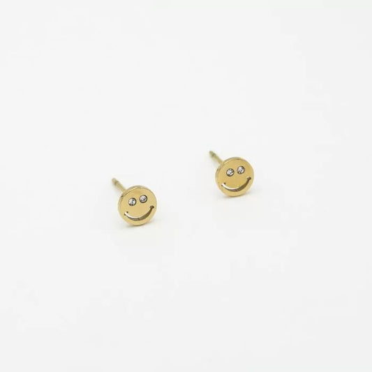 LOD of Love Gouden Smiley Oorknopjes met Kristallen Ogen