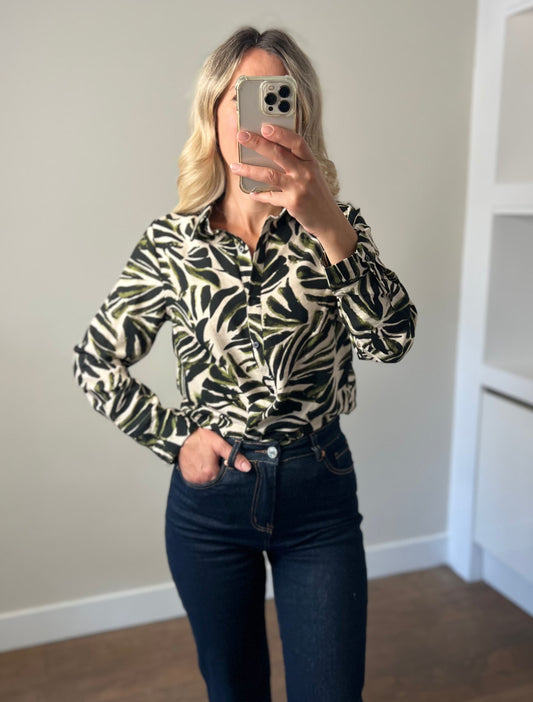 LOD of Love – Blouse Jungle Print Taupe Zwart