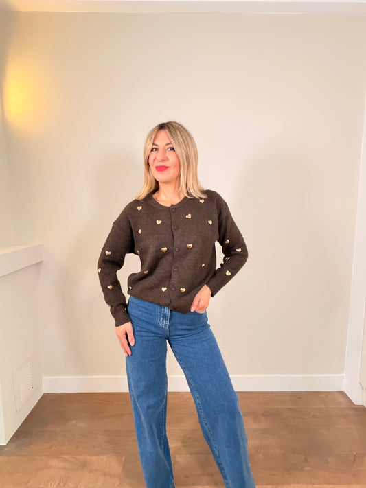 LOD of Love – Chocoladebruin Vest met Gouden Hartjes