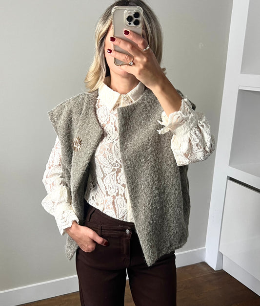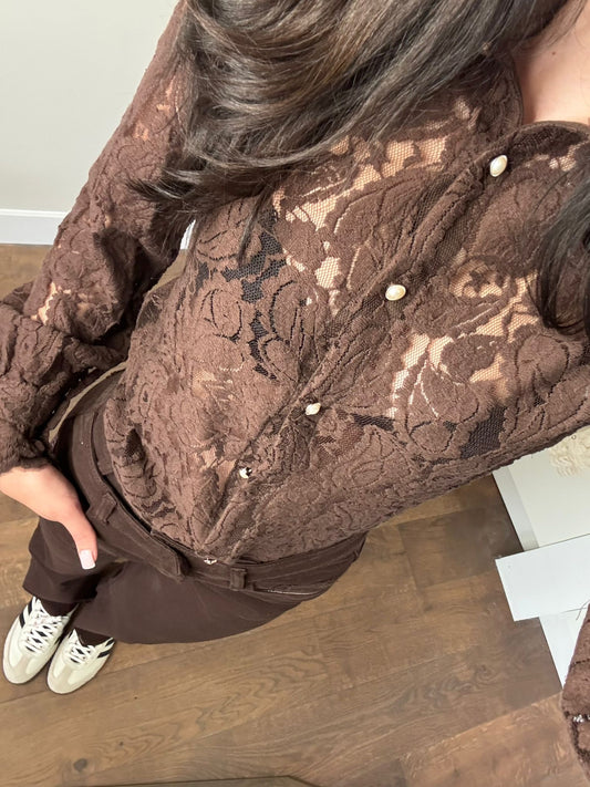 LOD of Love – Kanten Blouse met Parelknopen Bruin