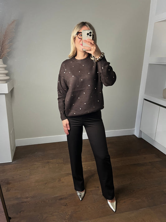 LOD Of Love - Chocoladebruine Trui met Gouden Hartjes
