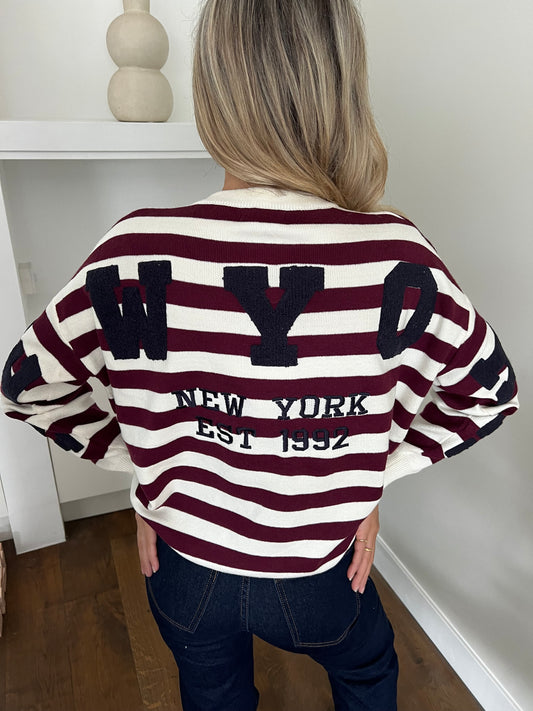 LOD of Love - New York Trui Bordeaux Offwhite Gestreept