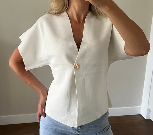 LOD of Love – Off-White-Top mit goldenem Knopf