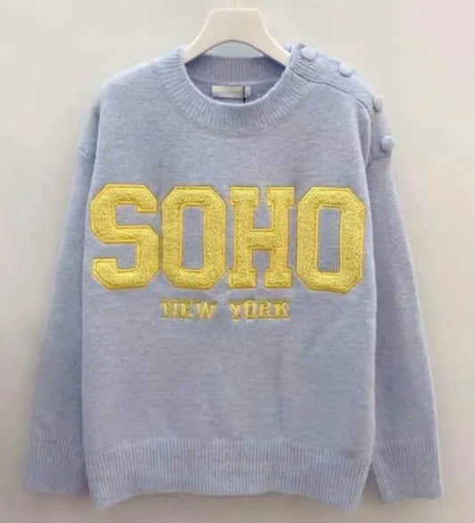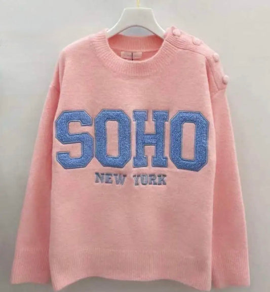 LOD Of Love - Striped Sweater Beige Brown With Embroidered Flower Sleeve