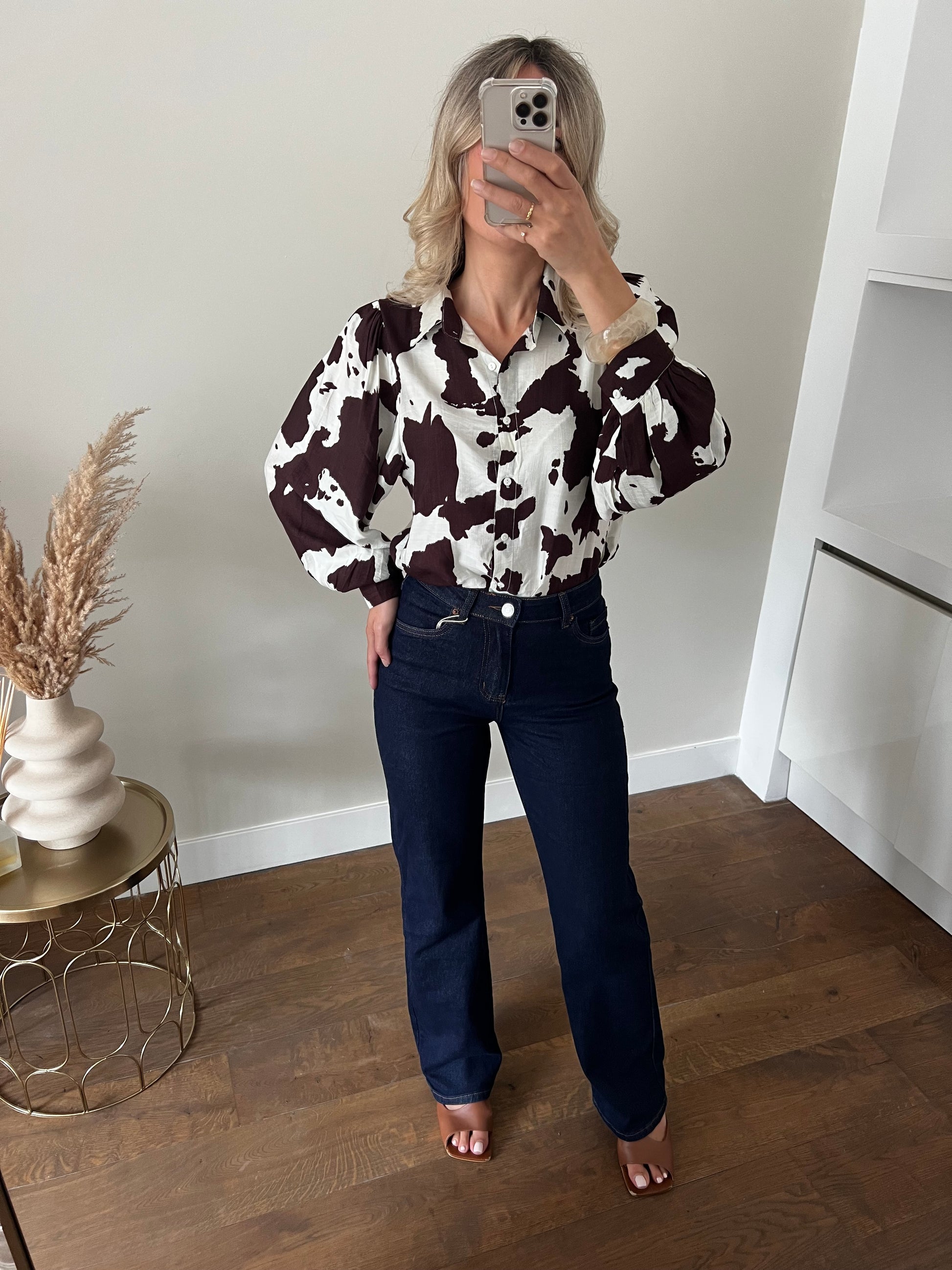 Make a statement with our Cow Print Statement Blouse – a unique and playful addition to your wardrobe. This oversized blouse with its iconic black and white cow print is both comfortable and stylish. Ideal for wearing loosely or cinched in for a more streamlined look.