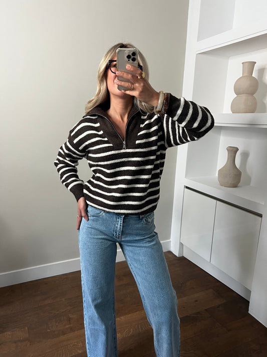 LOD Of Love - Gebreide Strepen Trui met Rits