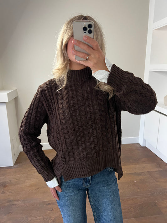 LOD Of Love - Donkerbruine Kabeltrui met Opstaande Kraag