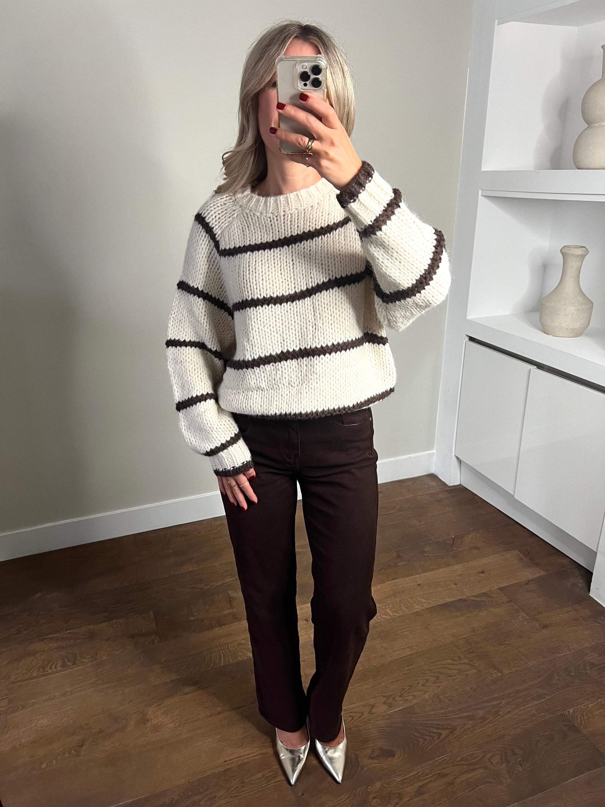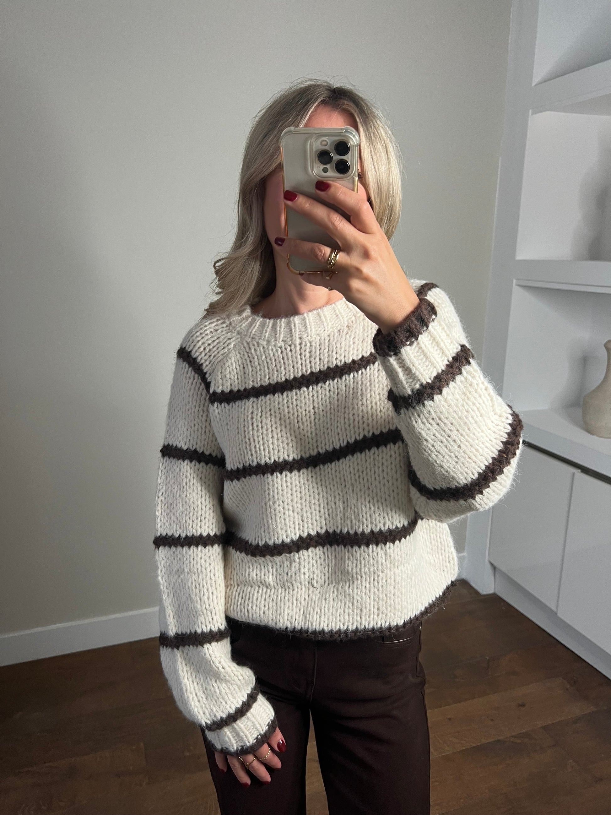 LOD Of Love - Chunky Gestreepte Trui Crème Bruin