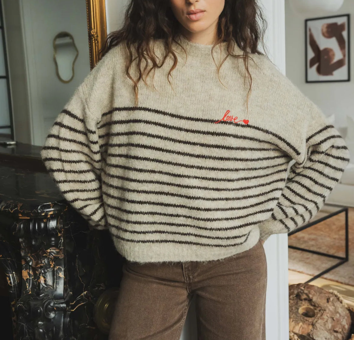 Gestreepte trui met rood "Love" detail
