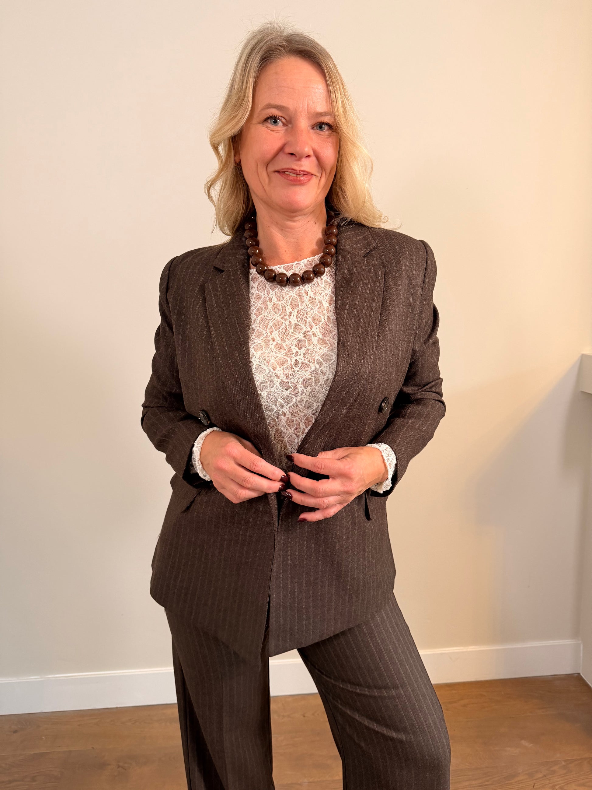 LOD of Love – Love Blazer Met Fijne Streep Chocoladebruin