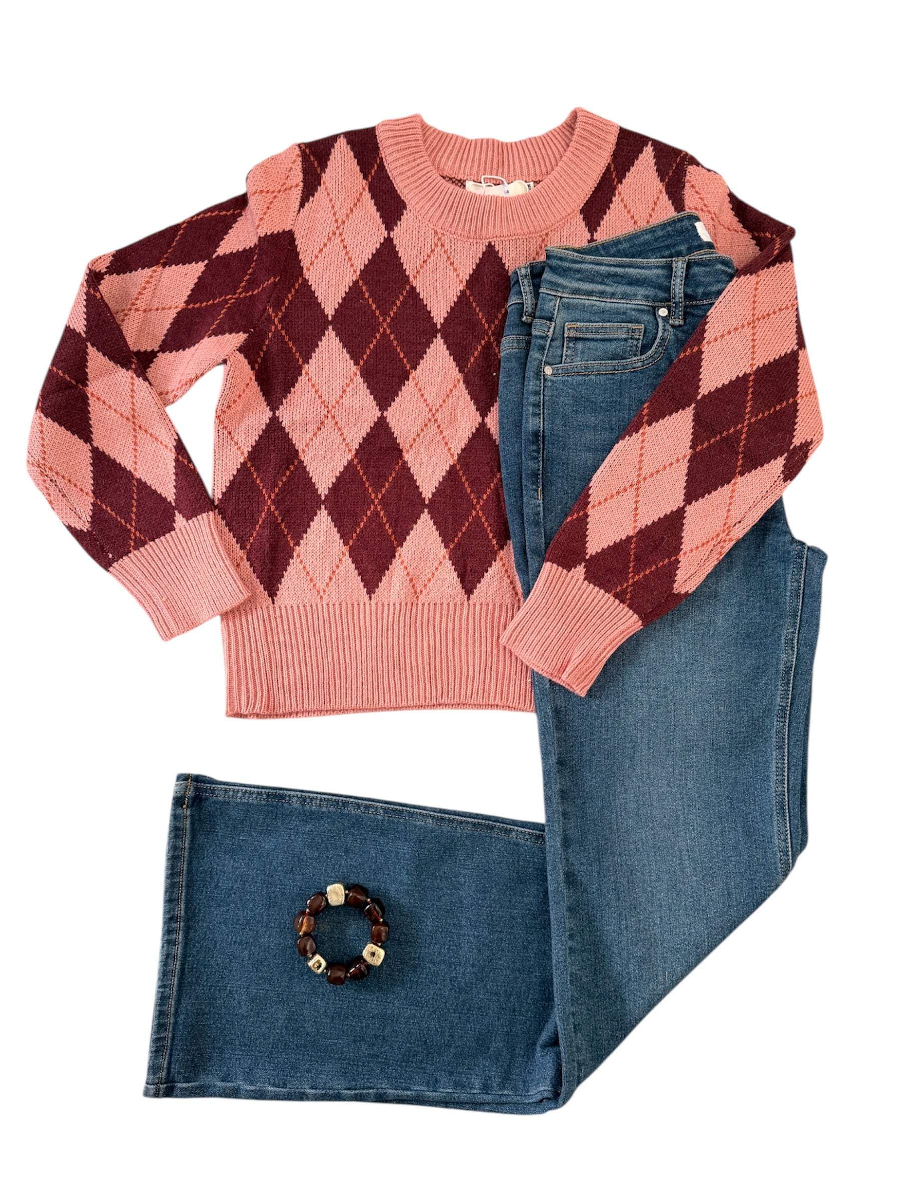LOD Of Love -Trui met Ruitmotief Roze/Bordeaux